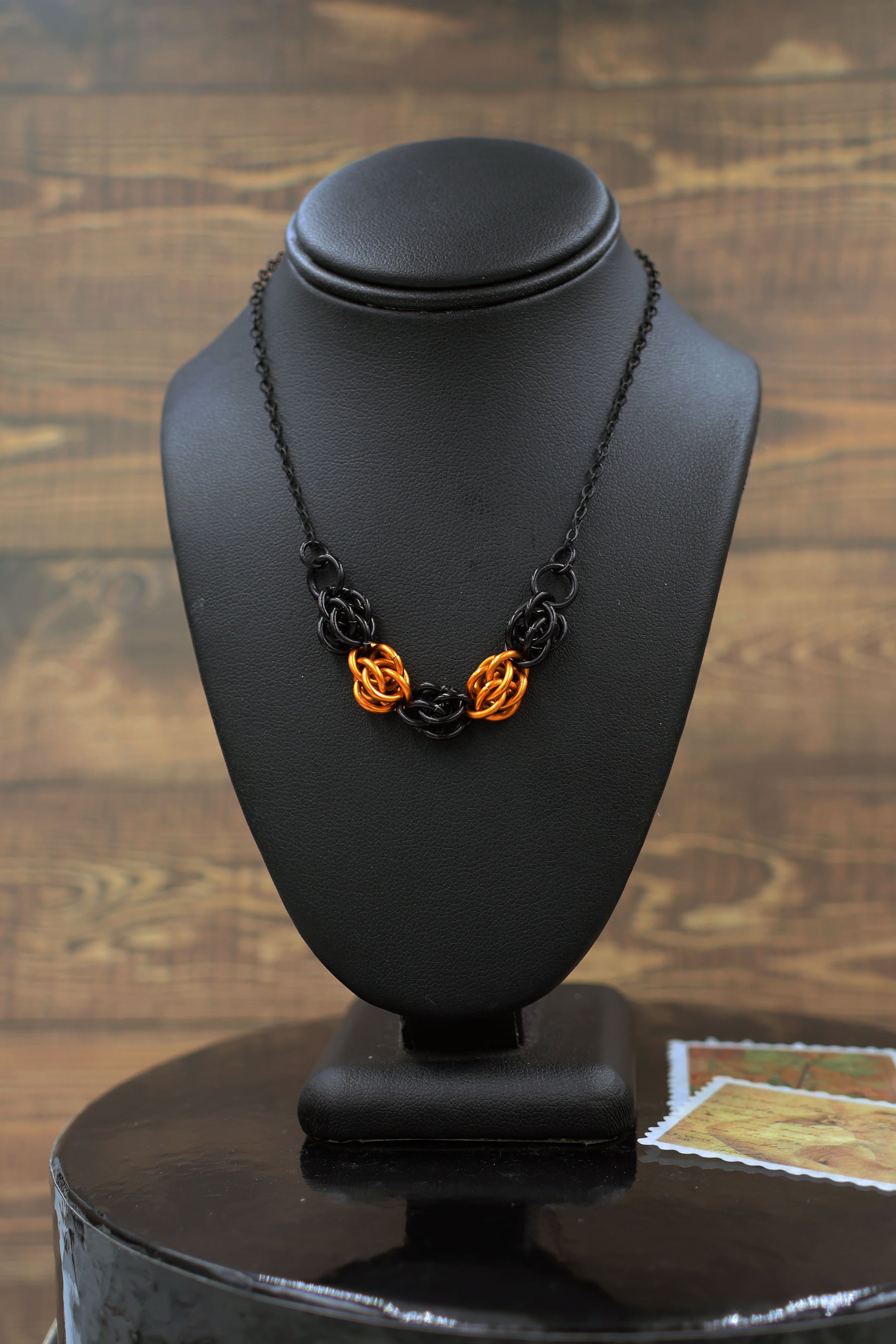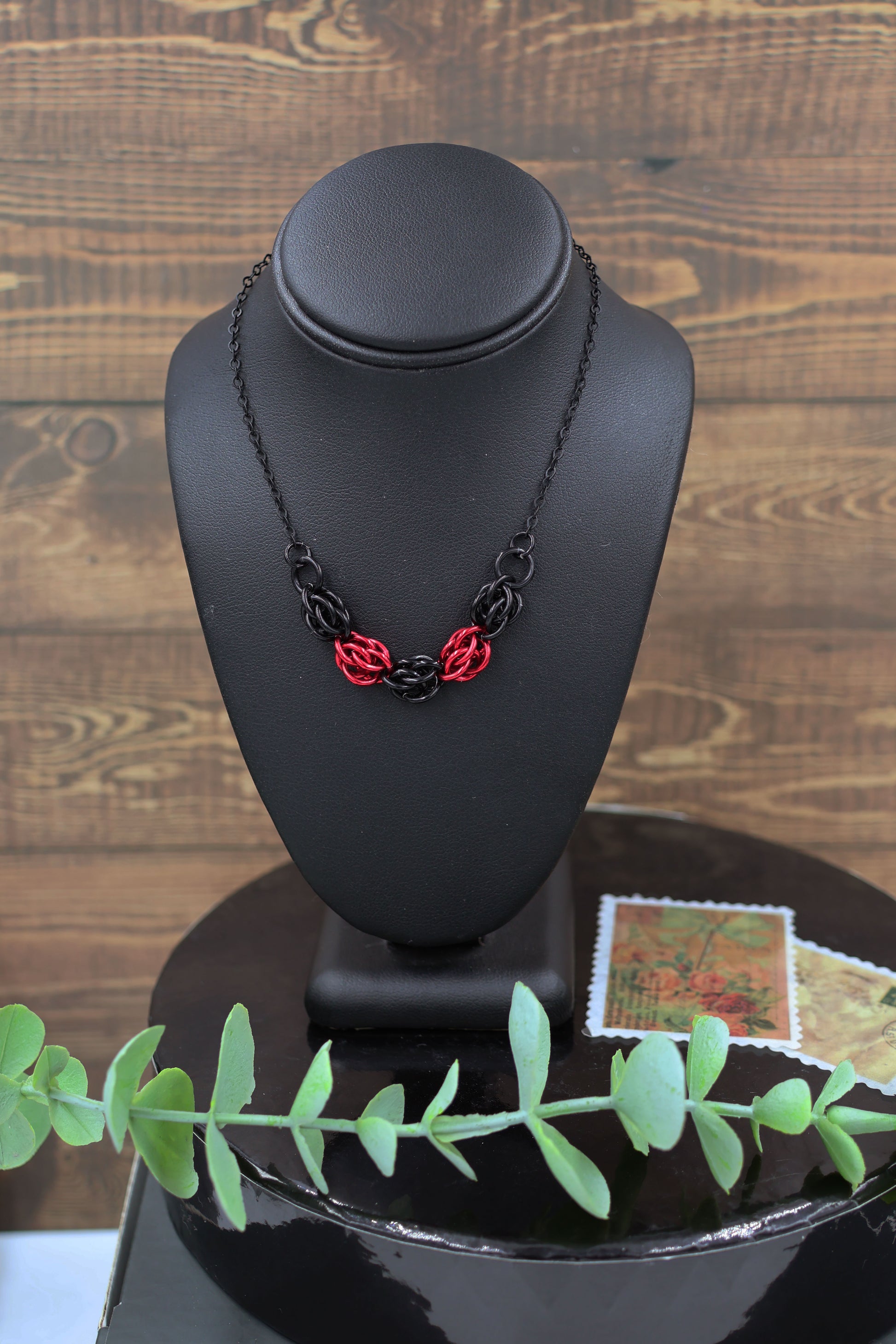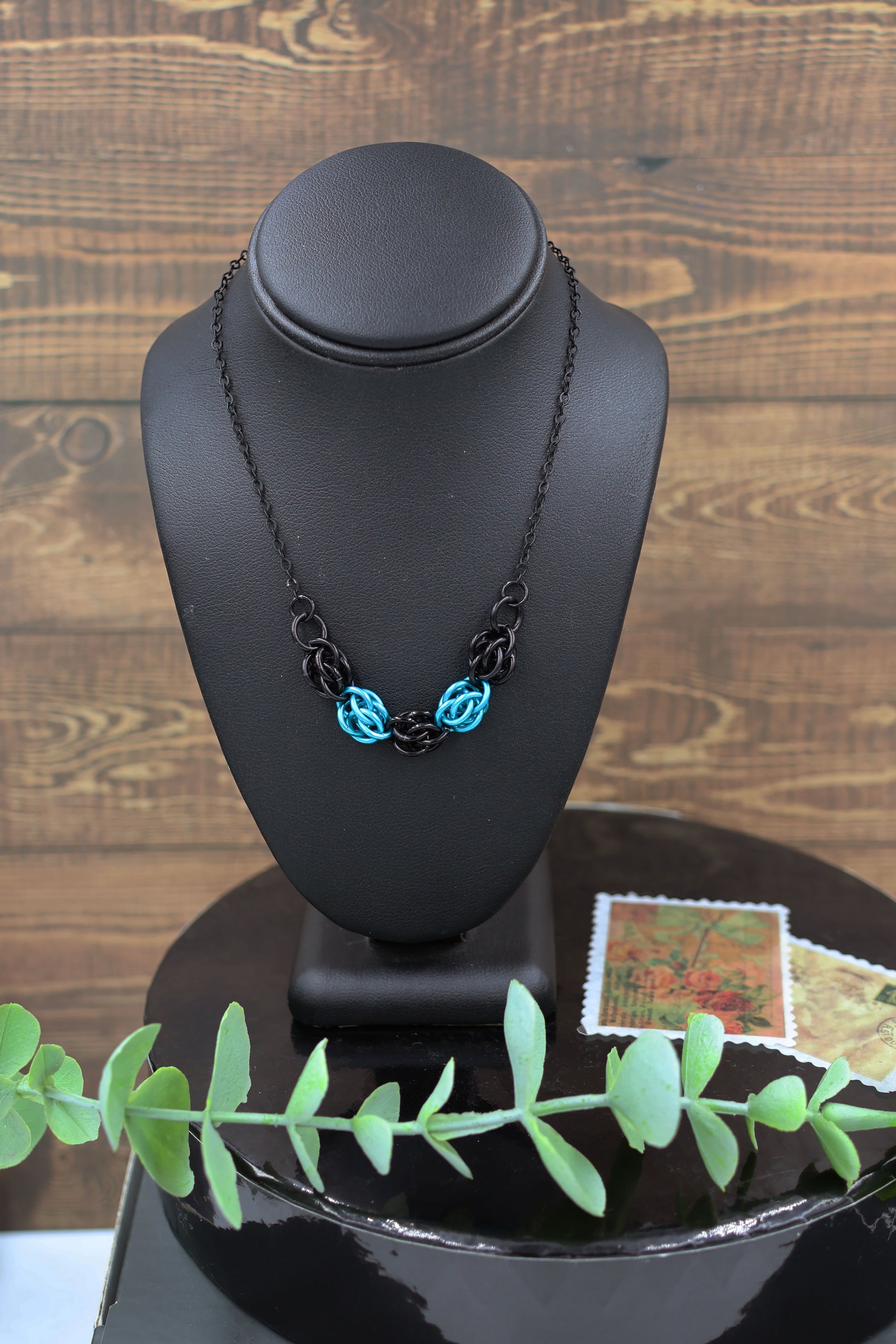 The Sweet Pea Necklace is handmade from lightweight anodized aluminum.