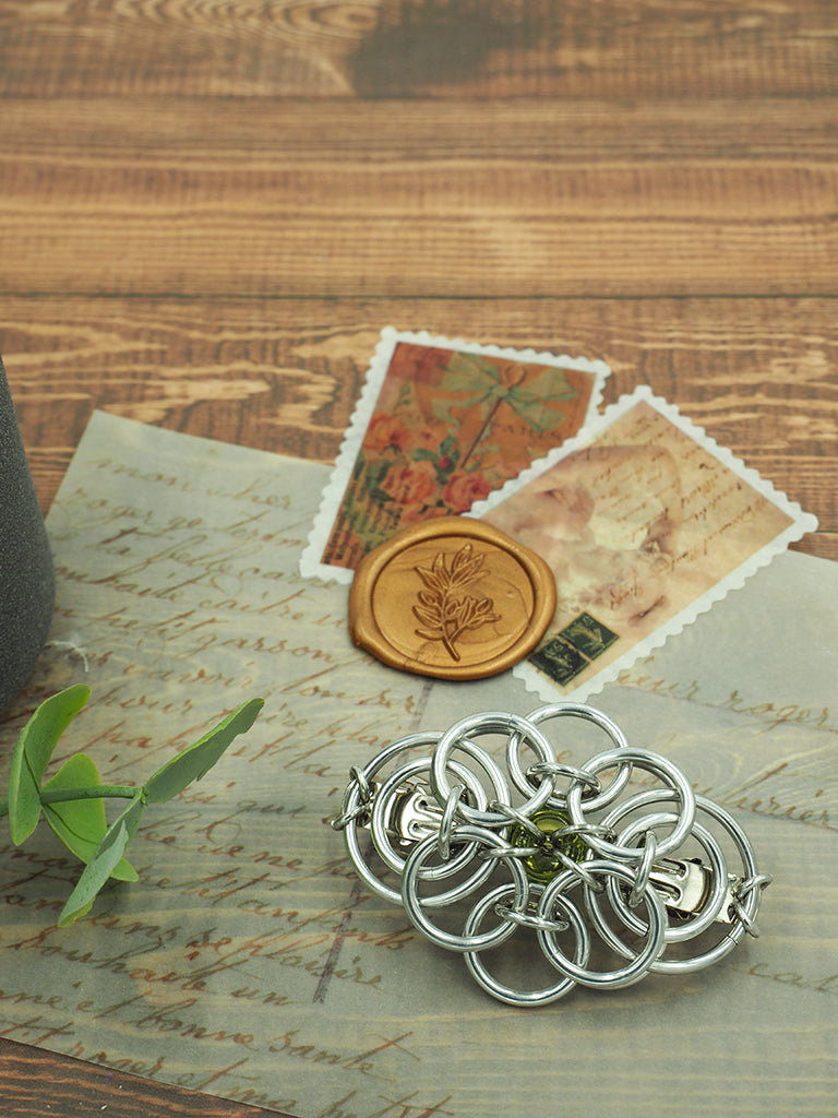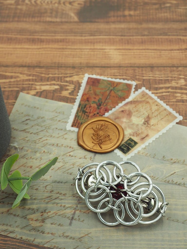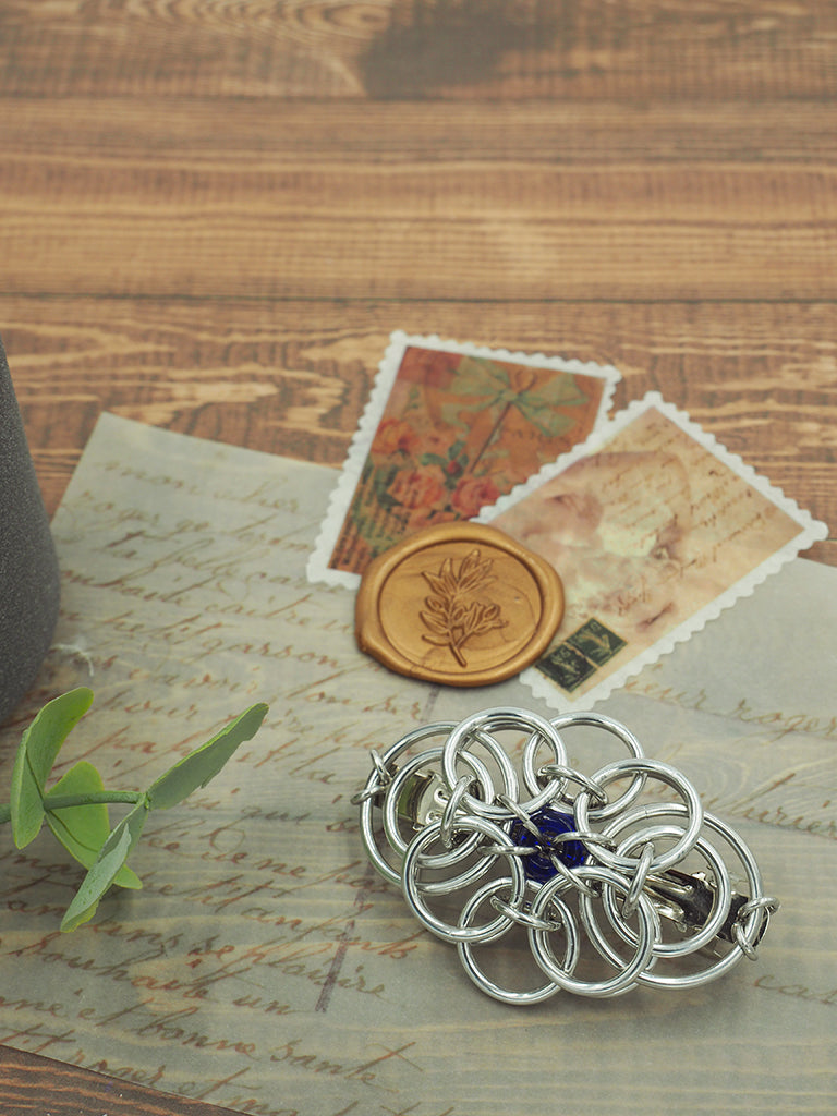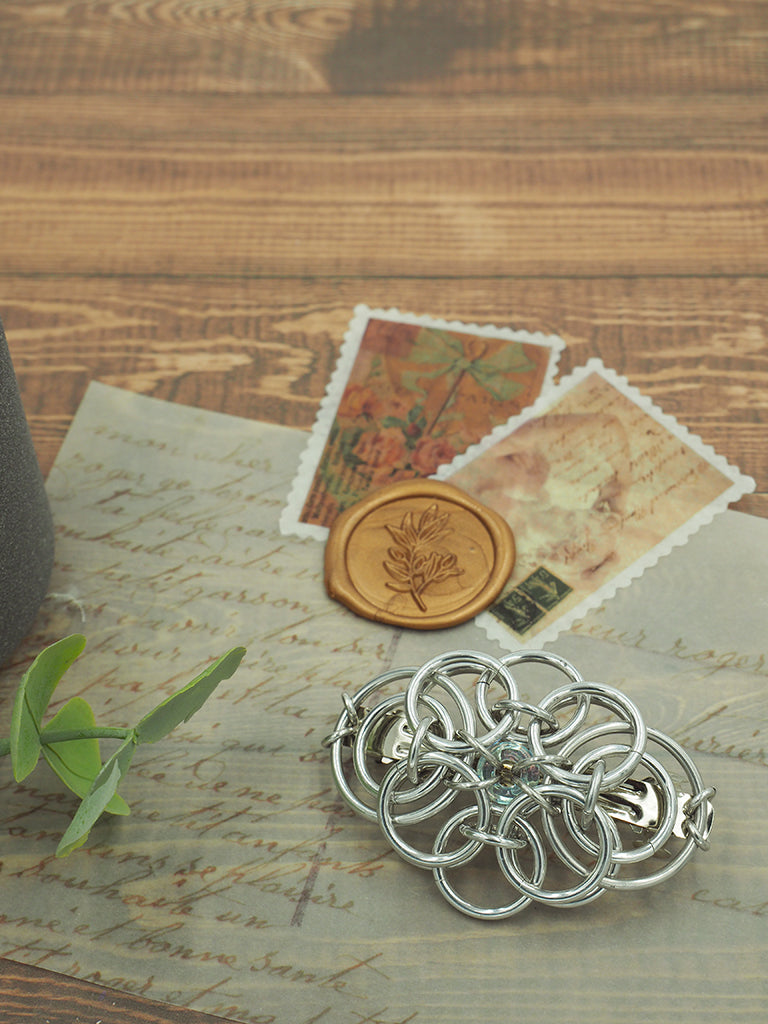 The Celtic Traditions Barrette is perfect for any occasion. Crafted with lightweight anodized aluminum, it is solid and durable and won't tarnish over time. With a nickel-free design, this barrette is the perfect accessory to complete any look. Featuring a 9mm Czech glass bead and a 60mm French barrette, you can choose from 12 colors suitable for all hair types.