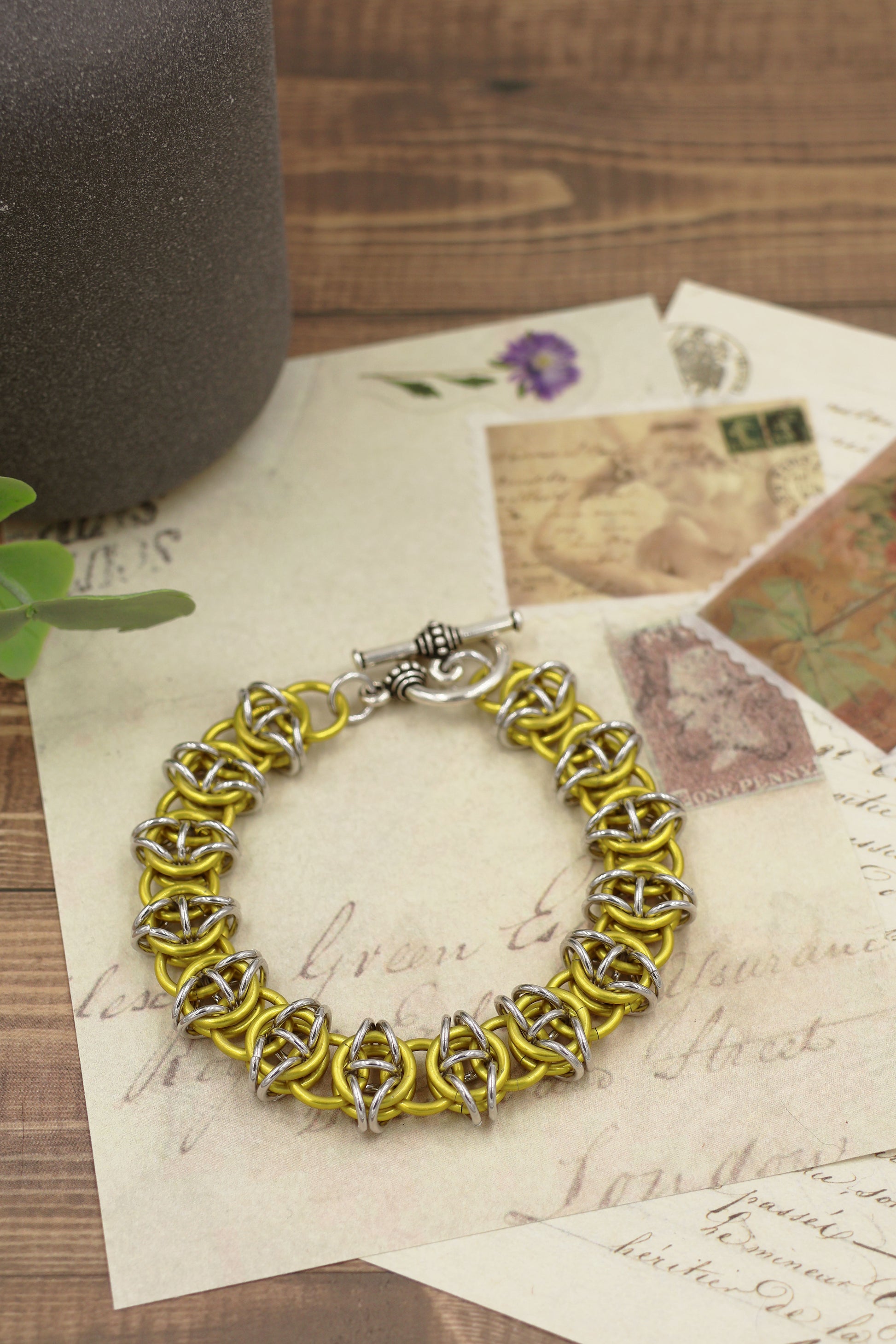 Like something from a Celtic tale, the Celtic Visions Bracelet evokes fantasy and brings a touch of magic to your day. Our Celtic Visions Bracelet is handmade of colorful (and nickel-free) anodized aluminum. Super lightweight and available in your choice of custom colors, the bracelet is finished with your choice of clasp! Add the Celtic Visions Earrings and Celtic Visions Necklace for a matched set.
