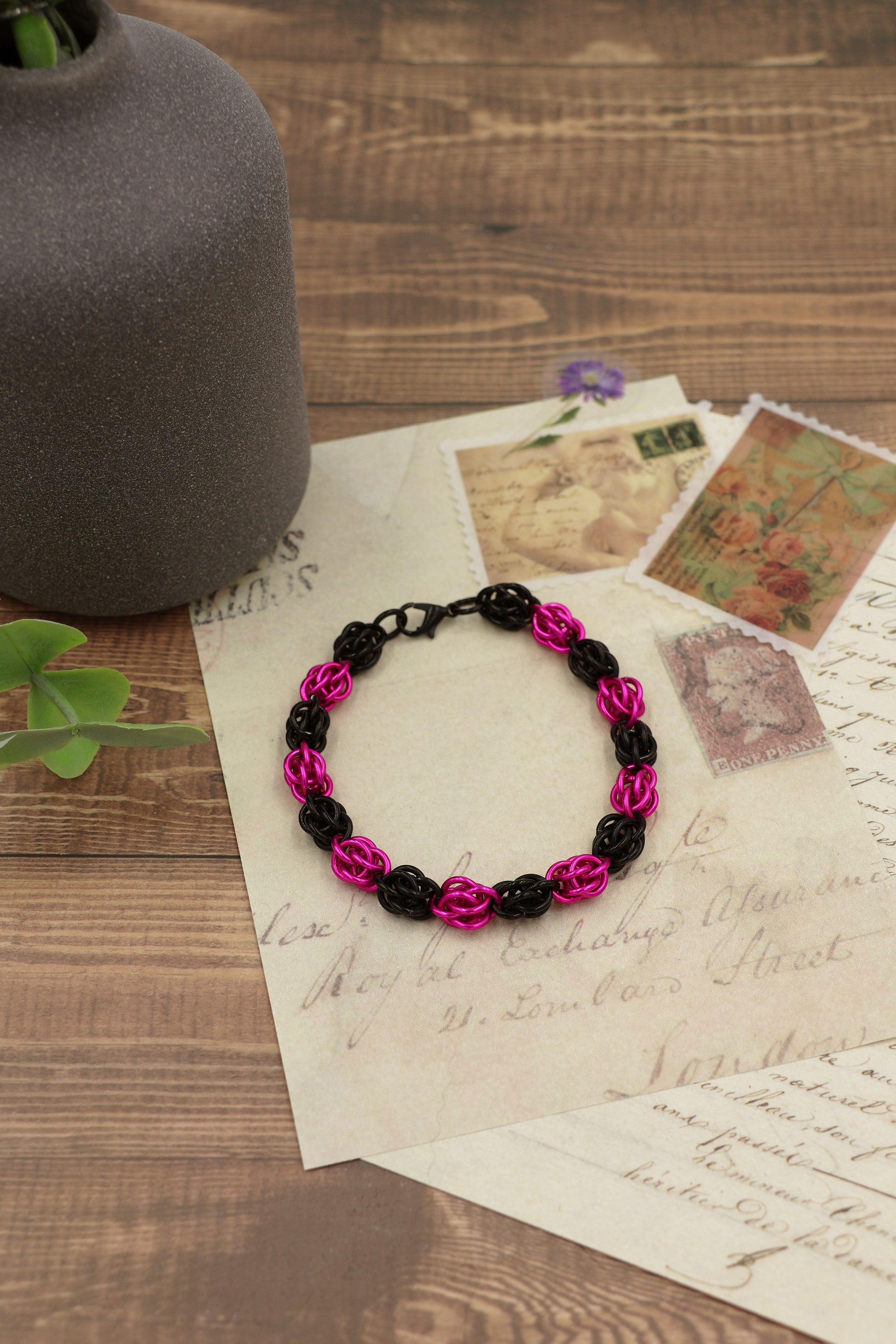 The Sweet Pea Bracelet is handmade from lightweight anodized aluminum.