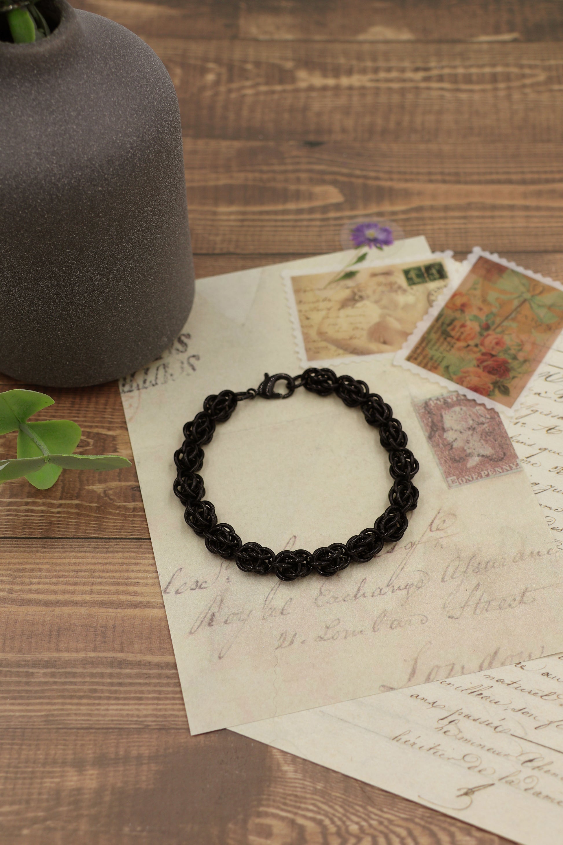 The finished bracelet comes with an antique silver toggle or matte black lobster clasp.