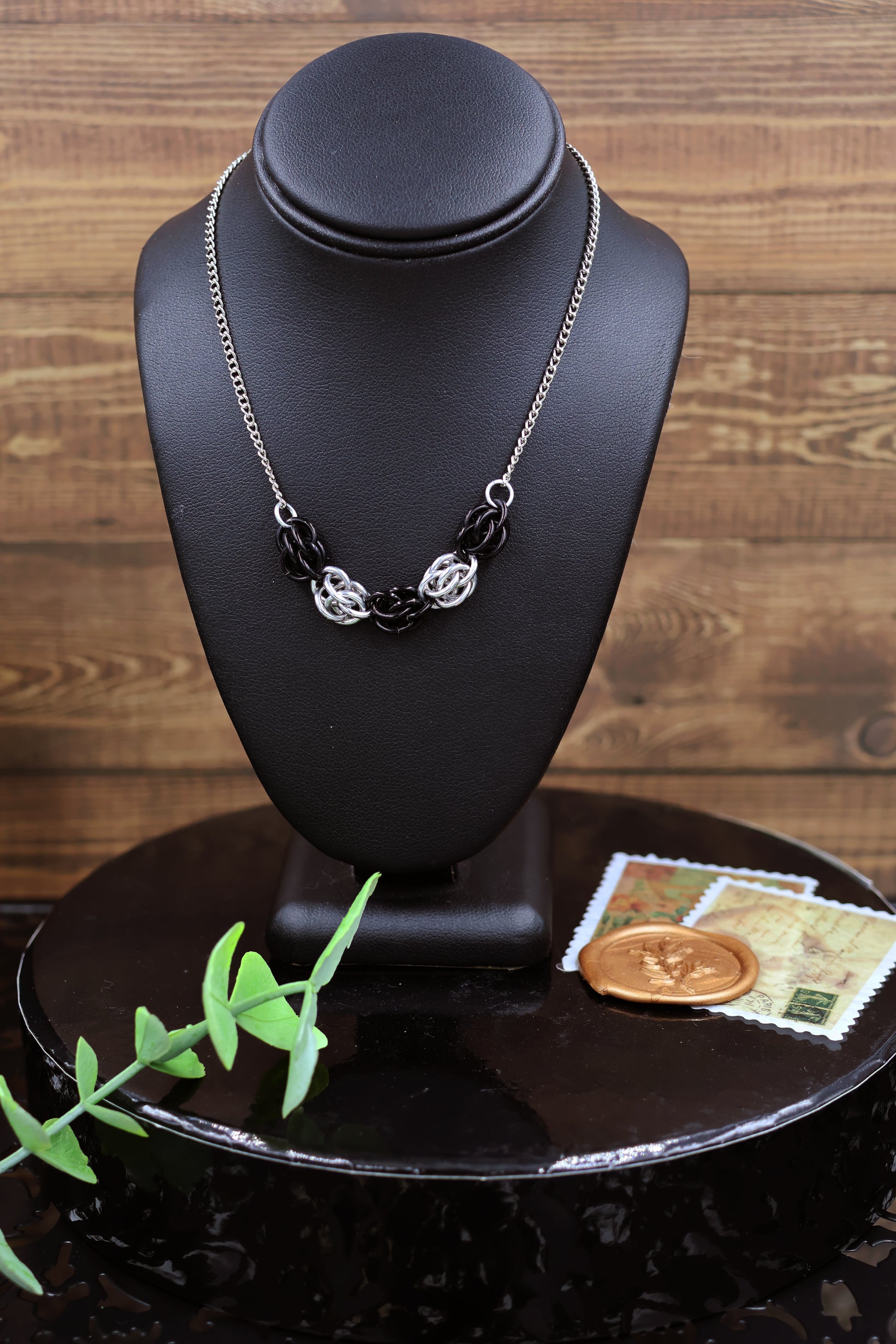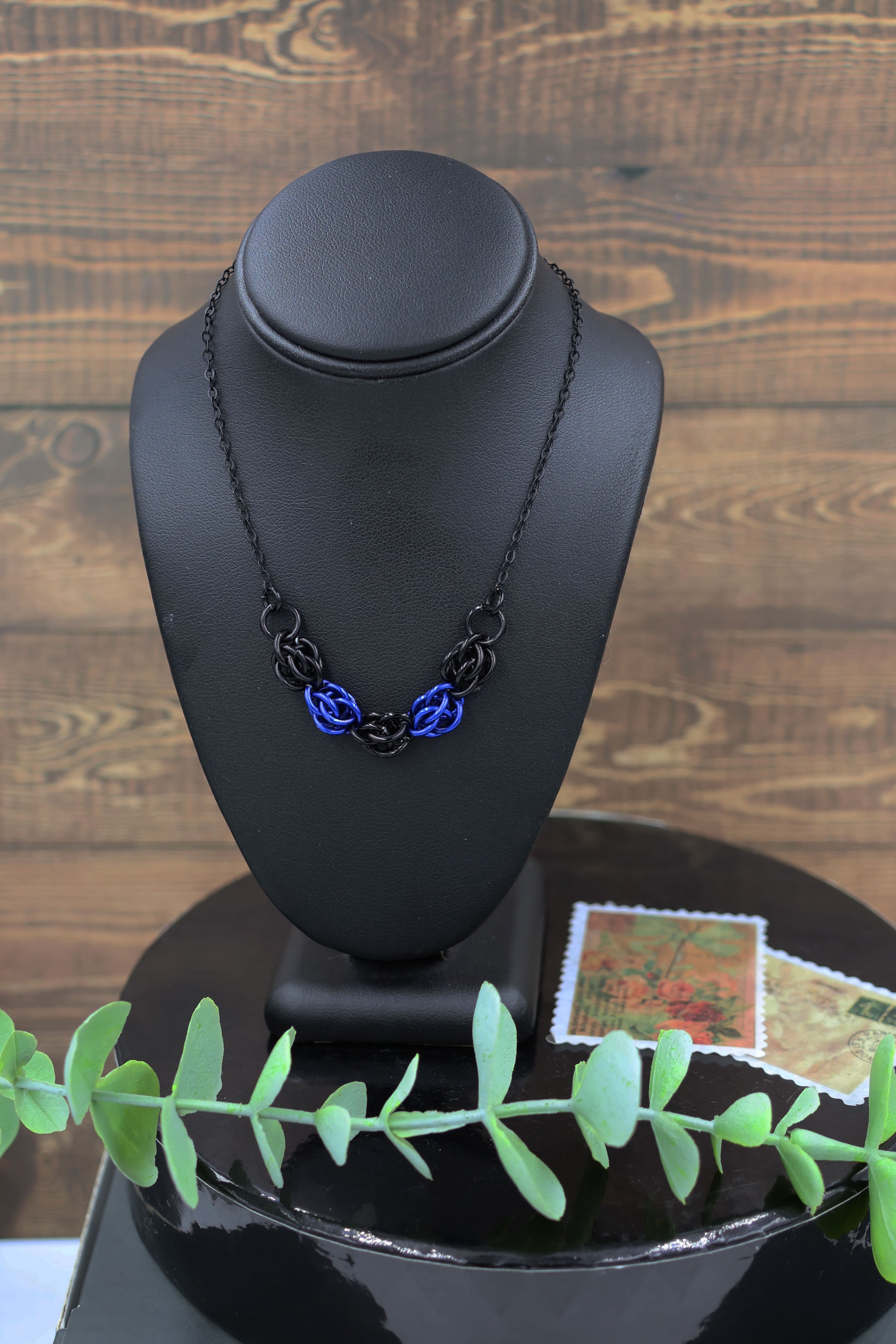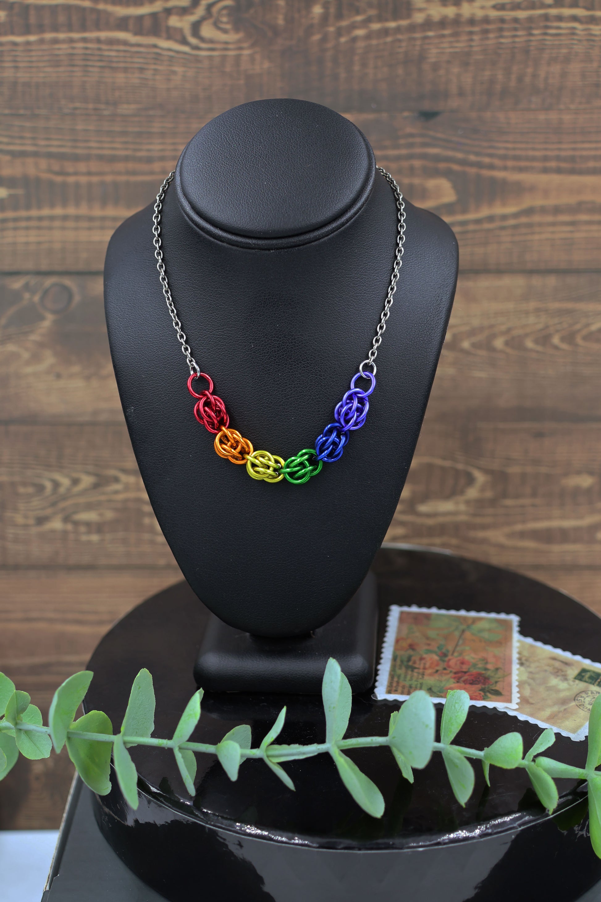 The Sweet Pea Necklace is handmade from lightweight anodized aluminum.