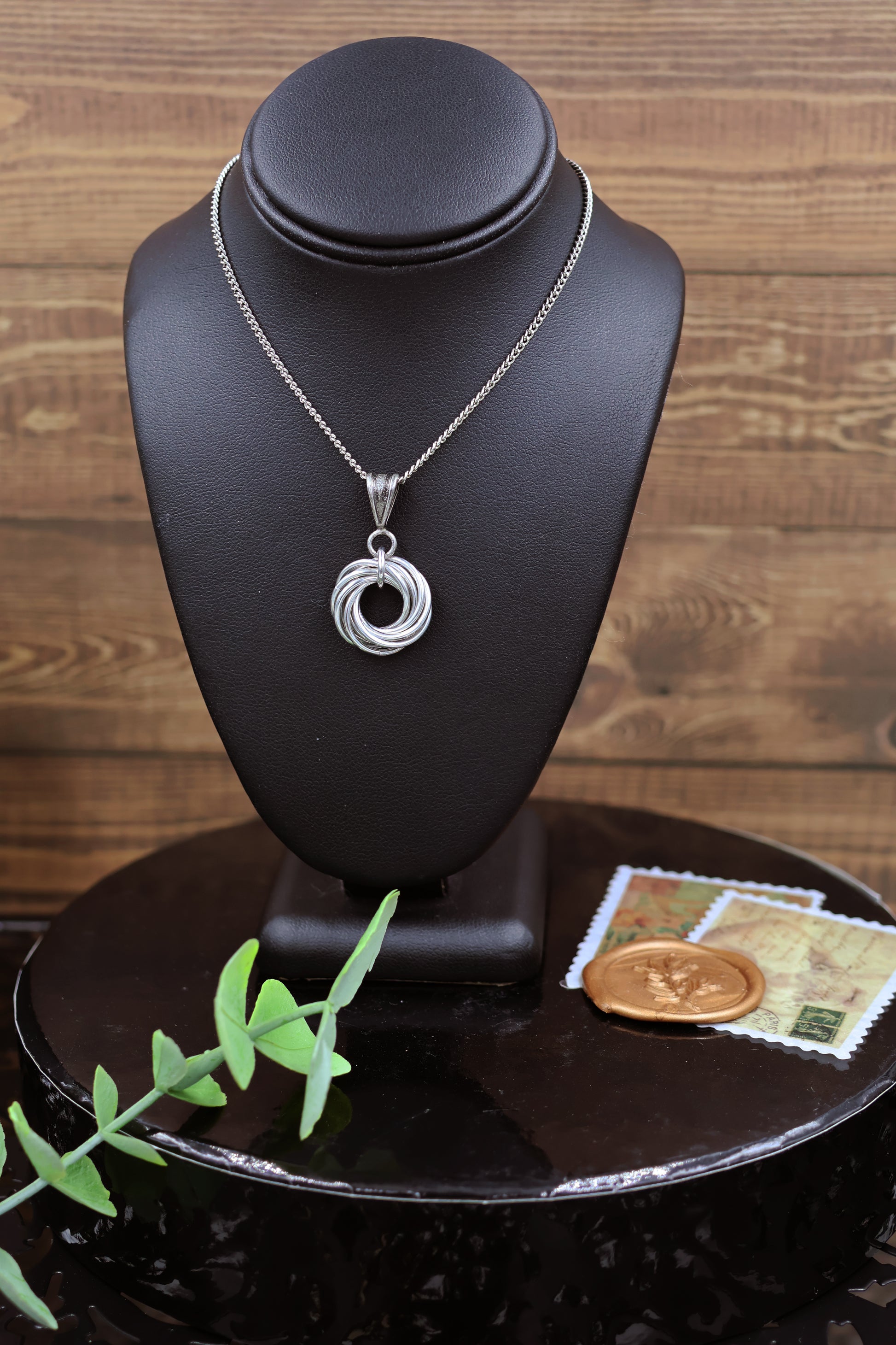 Our Mobius Necklaces are made of lightweight anodized aluminum.