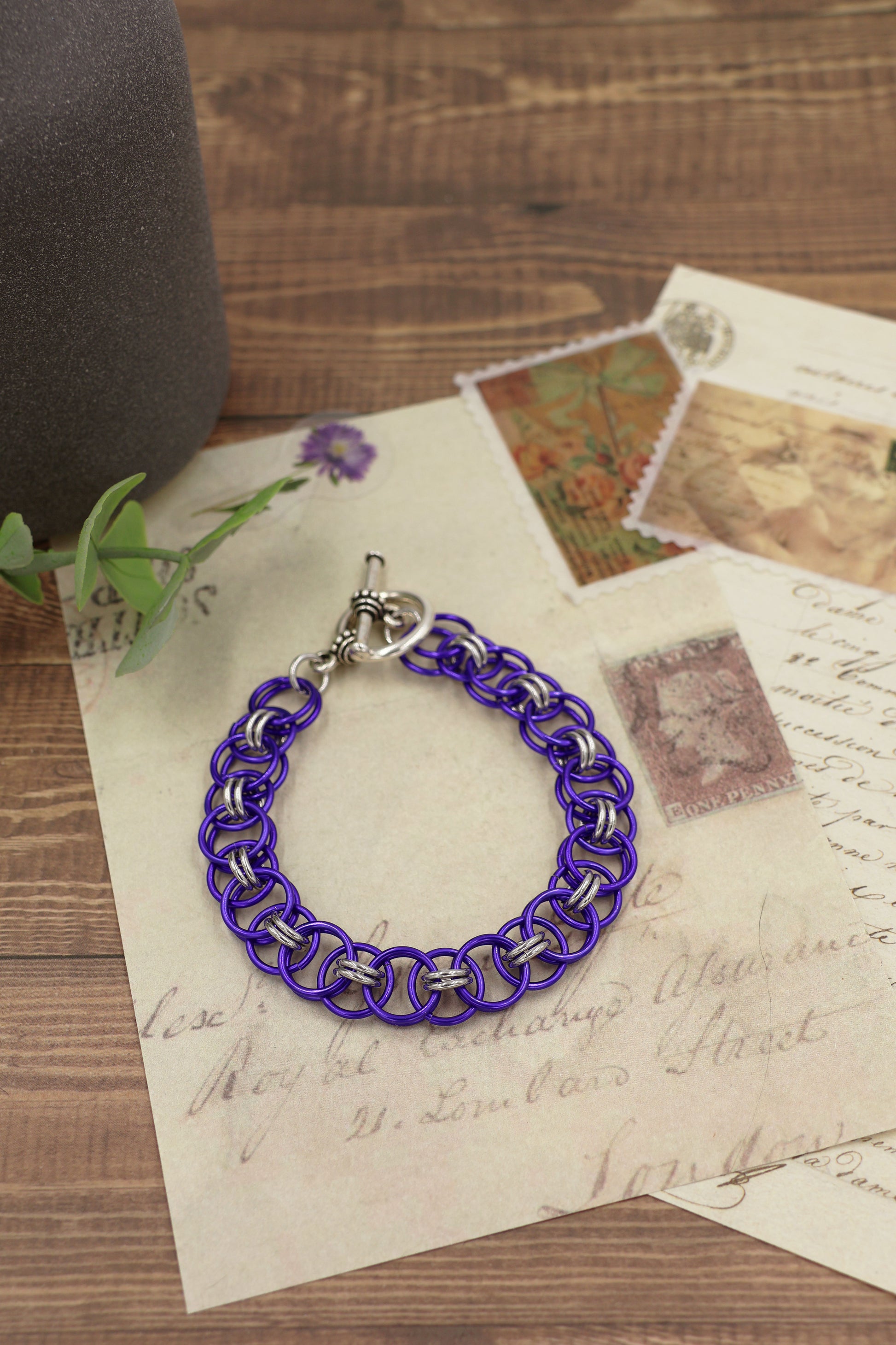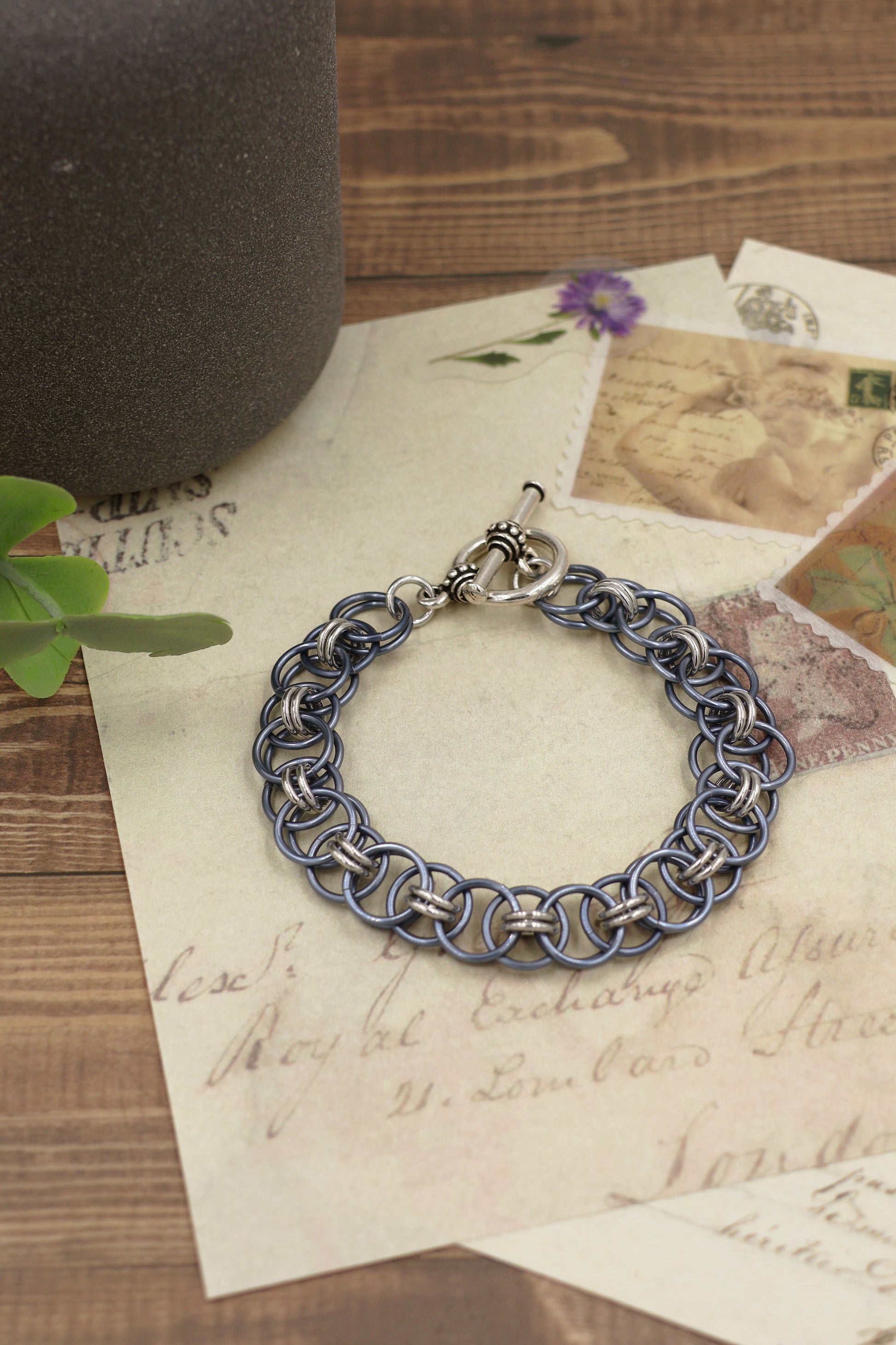 The finished bracelet comes with an Antique Silver toggle clasp or black lobster clasp.