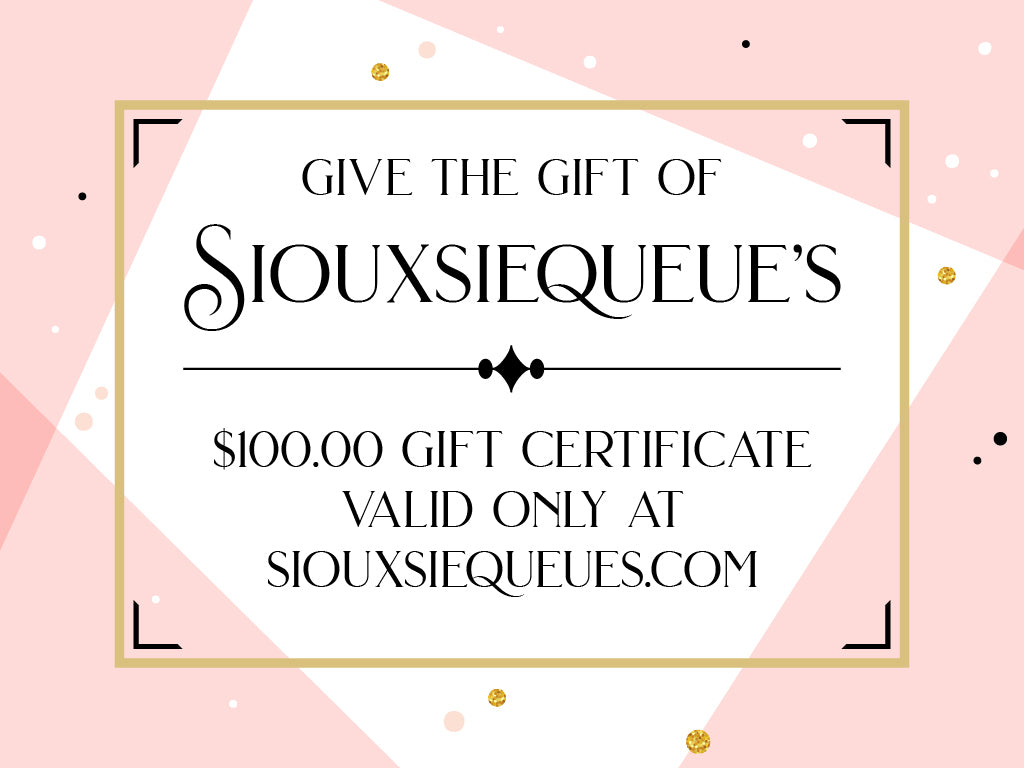 Give the gift of Siouxsiequeue's! Available in $20, $50, $100, and $200 denominations.
